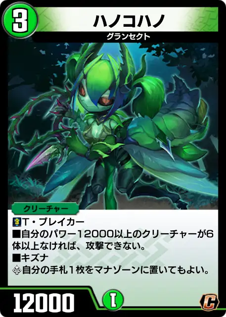 コミュニティ公開のカードはオリカの”ハノコハノ”。3コス12000のTBということで当然の攻撃制限のデメリット能力持ち。攻撃可能になる条件は12000以上が6体と条件が重い。それ以外の能力はキズナで手札から1枚ブーストというマナ加速能力。