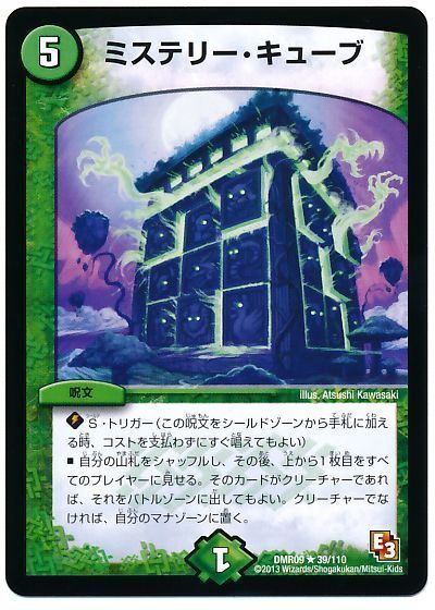 ホーガン・ブラスターとの違いは文明が自然になった、クリーチャー以外はマナに行くようになっただけというミステリー・キューブはミラミス&ホーガンのリペアカードとして開発が期待した通り?に坊主めくりゲーを展開、E3のゴッド・ノヴァとドロンゴ―がイマイチスペックだった事もありE2期となんら変わり映えのない坊主めくりゲーに嫌気がさした結果、引退者が続出。妖怪収集ゲームの躍進というマイナス要素も相まってデュエマ第二の暗黒期を作り出す遠縁となってしまいました。