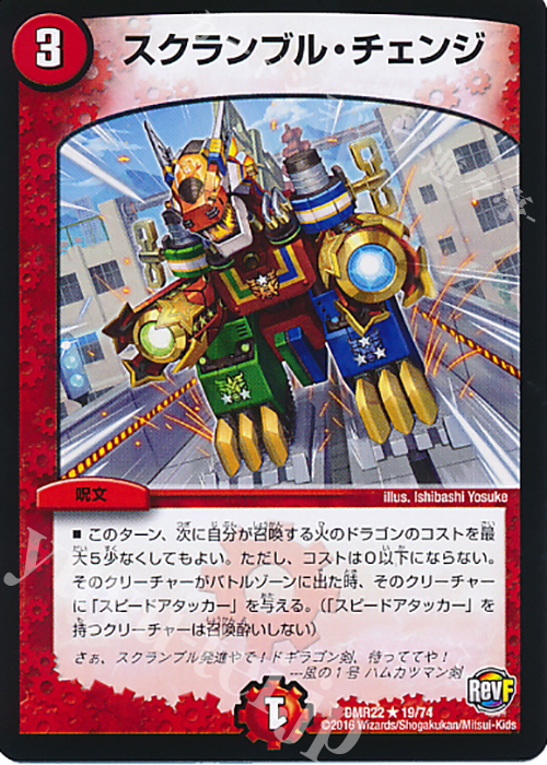 そして2016年9月17日にスクランブル・チェンジが世に出ることになったのですが、スクチェン登場からわずか2日後のGP3rd(参加者約2000名の超大型大会)では案の定、スクチェン→マナロックが猛威振るうどころか、NEXミラダンテでも5枚目以降のコッコ・ルピア枠として4Tにボルシャック・NEXやマナロックを召喚するためにスクチェンが使われるなど、色が赤になった事のをいい事にスクランブル・チェンジ&マナロックが大流行、その後も革命Fが多色推しという事も相まってヘイトが集まりました。